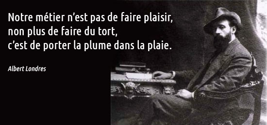 « Notre métier n’est pas de faire plaisir, non plus de faire du tort, c’est de porter la plume dans la plaie », disait Albert Londres qui a donné son nom au plus grand prix de la presse française.