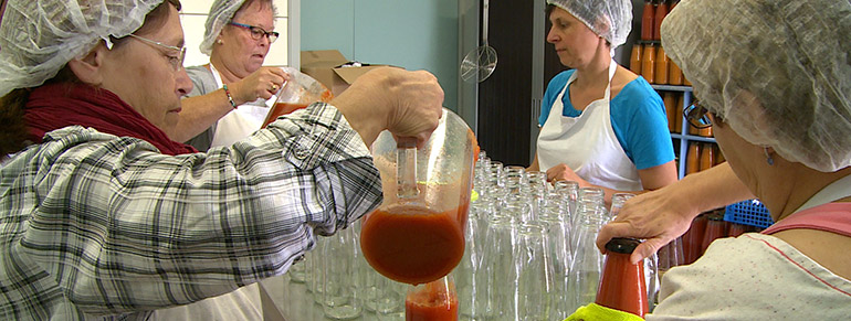 Tourné sur quatre saisons, pendant une année cruciale – 2015 – qui a vu l’aboutissement de la quasi totalité du programme de transition, le film a d’abord pris la forme d’un reportage de 52 minutes, diffusé par France 3 Alsace le 7 mai dernier sous le titre « Sacré Village ! » Ce format ne suffisait cependant pas à rendre raison de la richesse du matériel filmé ni de la richesse humaine qu’il représentait : la démarche de transition globale, encouragée par la municipalité et désirée par des citoyens éclairés, génère une puissante dynamique, qui va s’amplifiant tout au long du film. Pour évoquer cette aventure citoyenne, il semblait plus adapté de substituer au commentaire journalistique la parole des personnages, racontant eux-mêmes leurs motivations, leurs hésitations, leurs enthousiasmes.